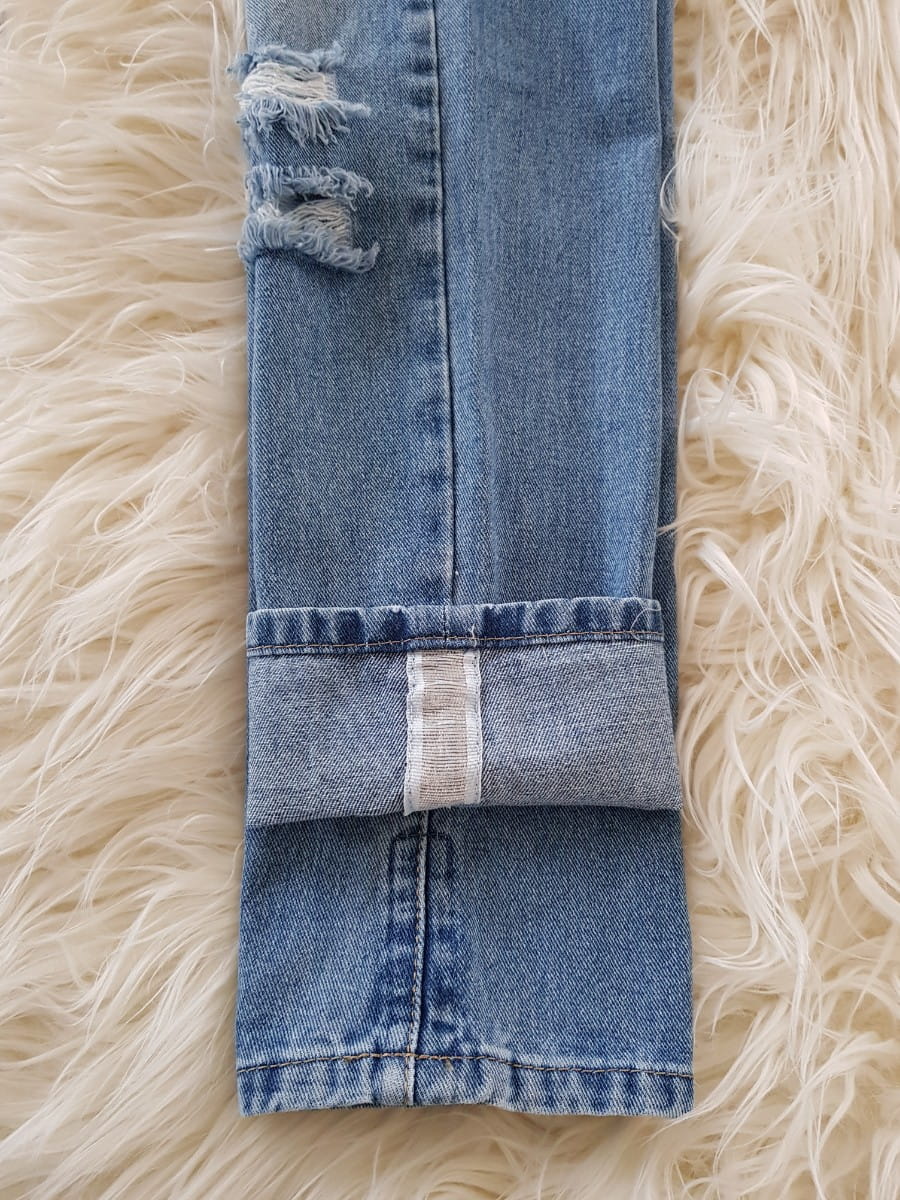 Spodnie jeans Boyfriend przetarcia i srebrnym elementem na dole nogawki